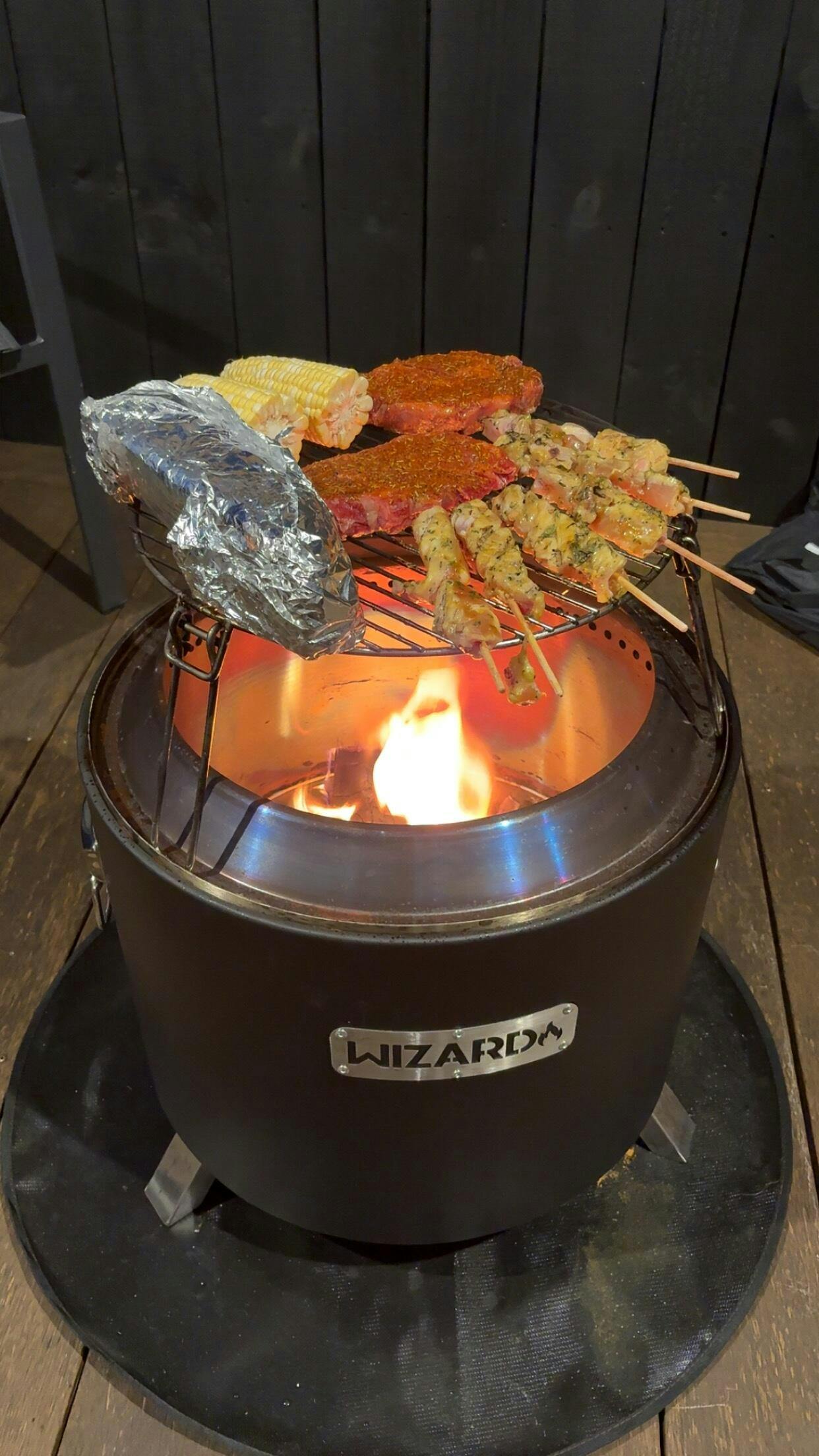 Already had a little BBQ with our Wizard fire pit. Bonus feature: While we’re waiting for the heat deflector, we’re using this and the lid to achieve a similar effect.